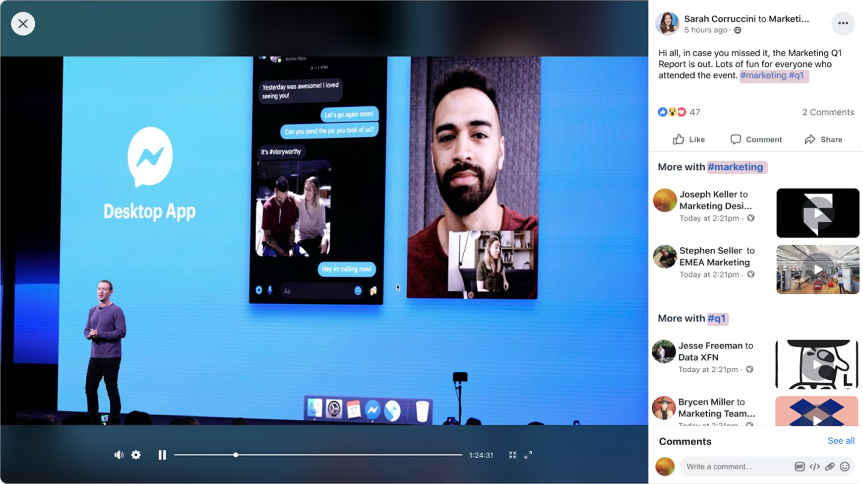 Video discovery increased among DAP (daily active people) on Workplace Feed by 16.43%. Improvements we made to the live video creation and consumption experience also granted us an uptick in employee engagement, with the median watch time of Live Video increasing by 32.05%.