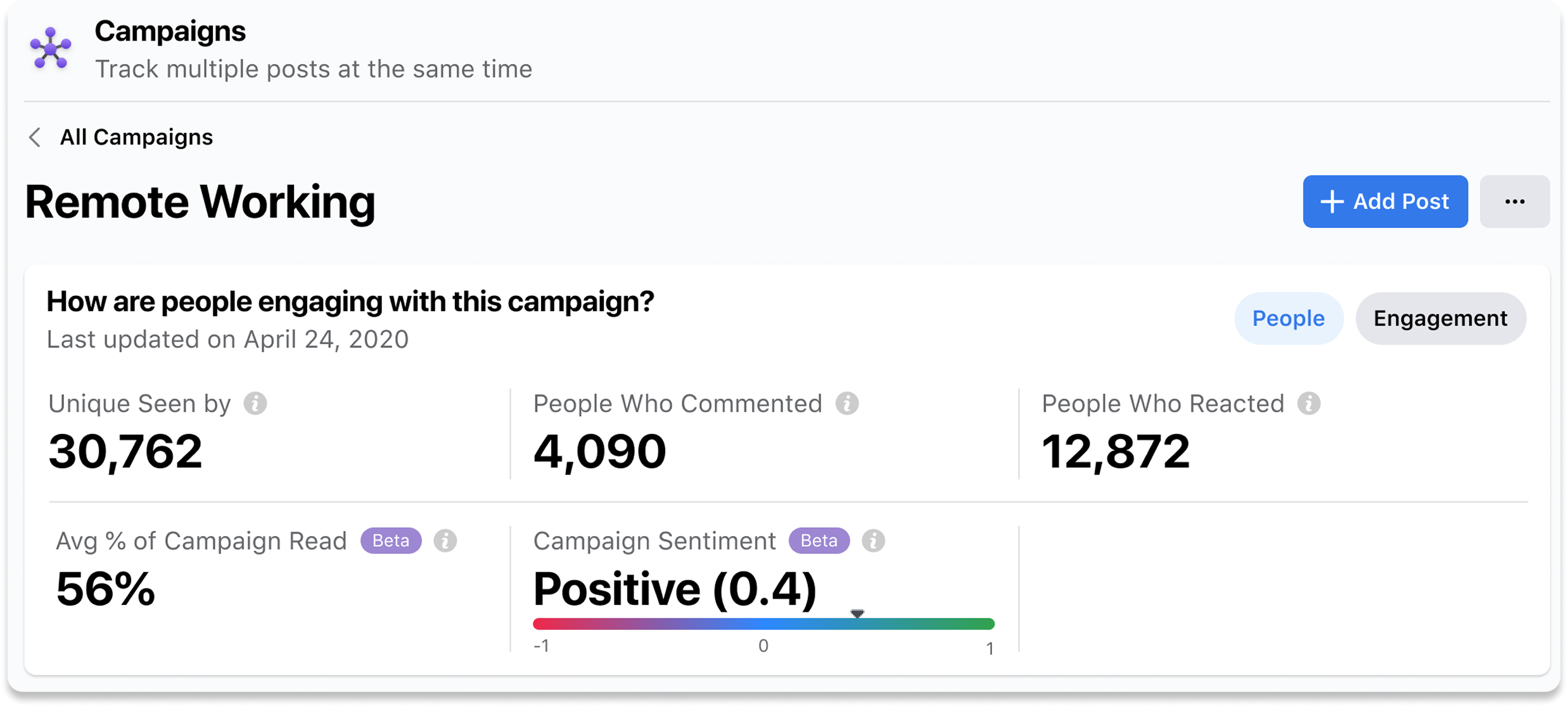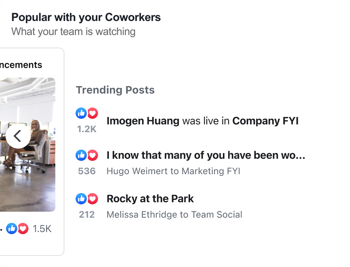 Posts on Facebookās internal Workplace generally had high engagement and discoverability. For other companies we were finding the opposite to be true, so we ran experiments on ending carousels with trending posts and search.