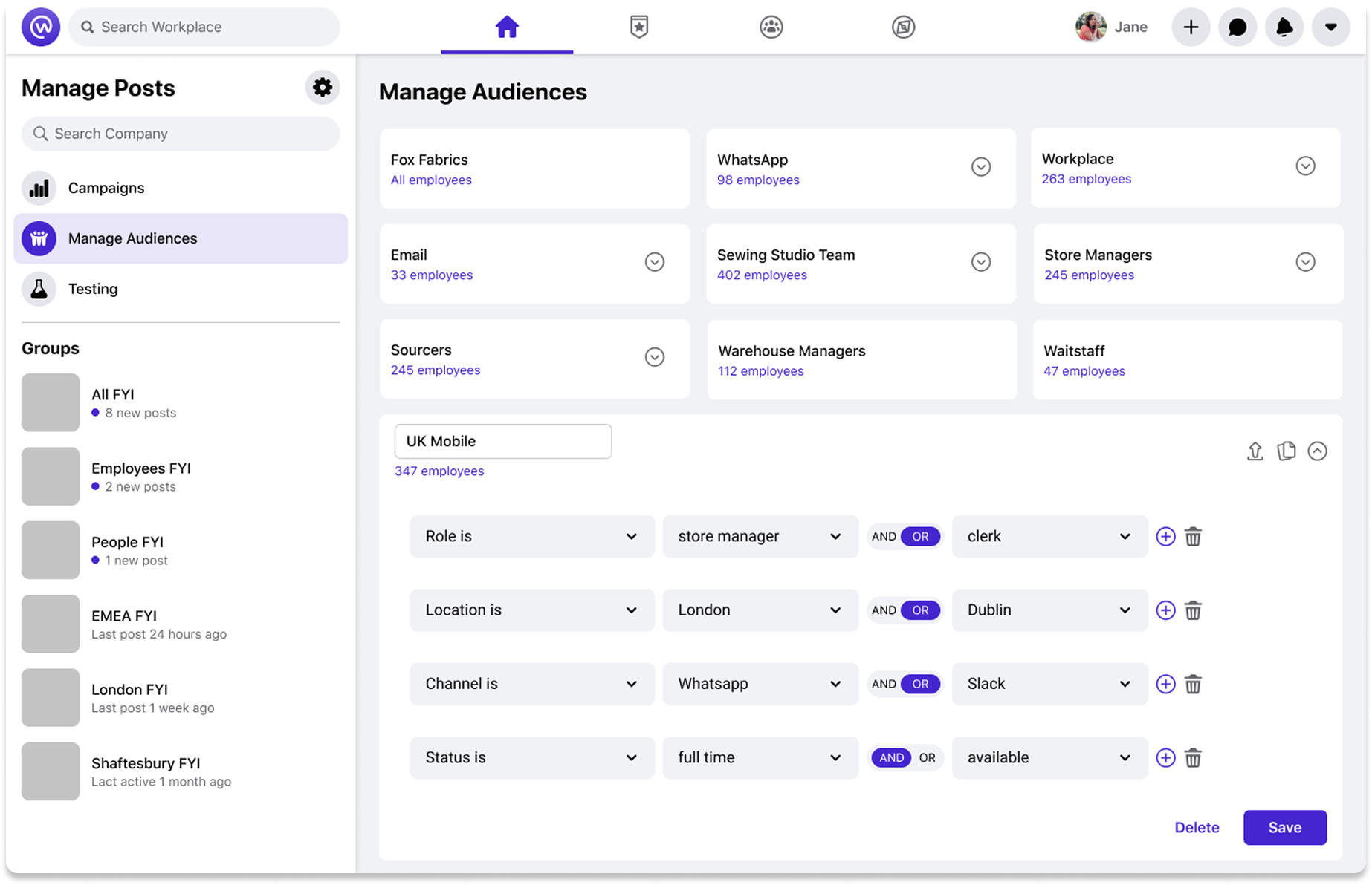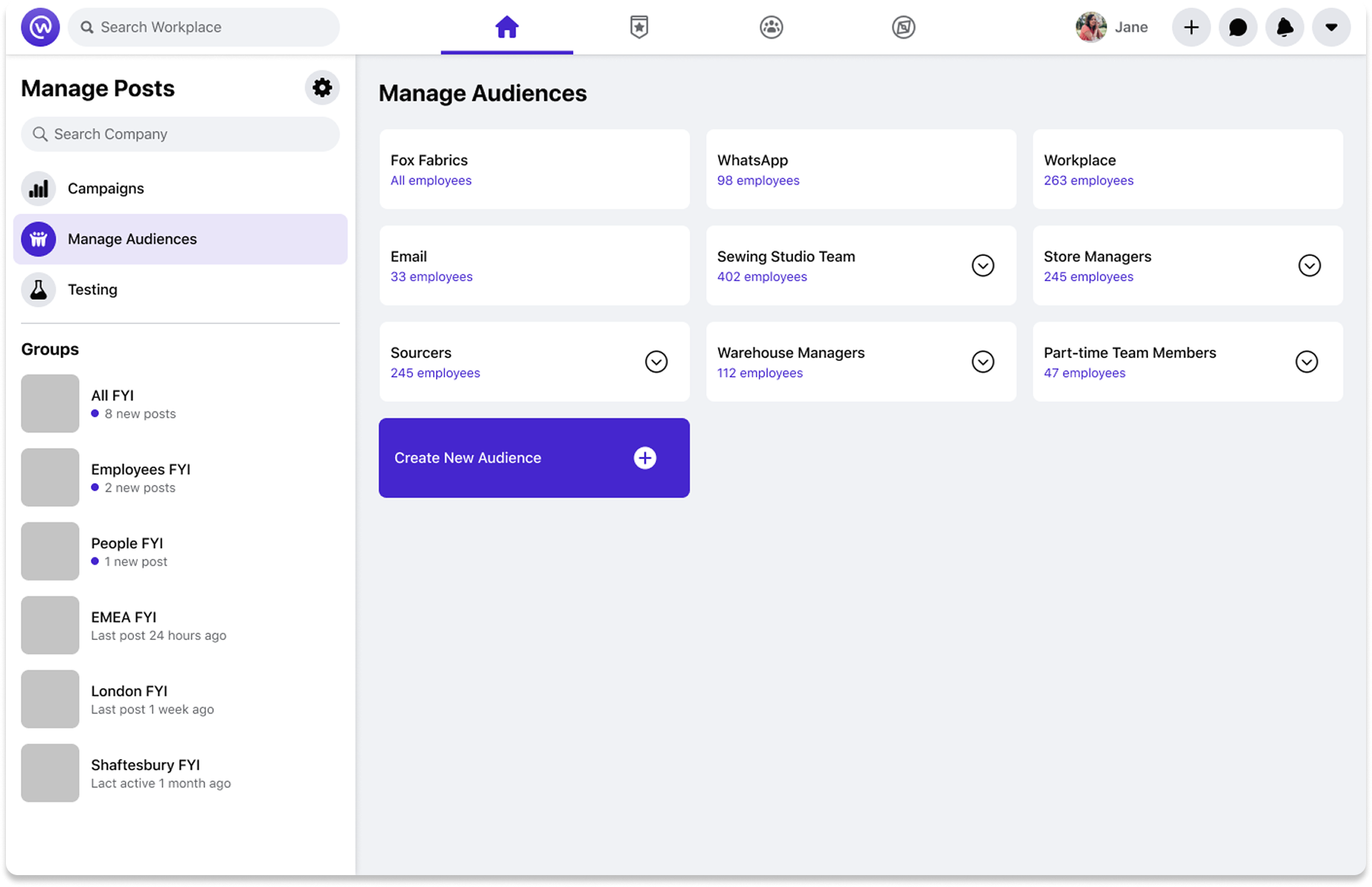 While insightful, research with external users helped us discover that the way Facebook used this product was completely different from other companies. We found that every company had its own nuance to their Workplace use.