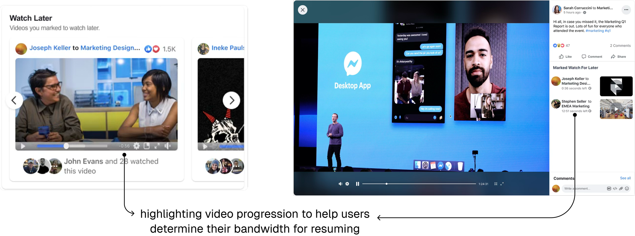 Could we create a āWatch Laterā playlist like YouTube? What visual cues could we employ to encourage users to jump back in?