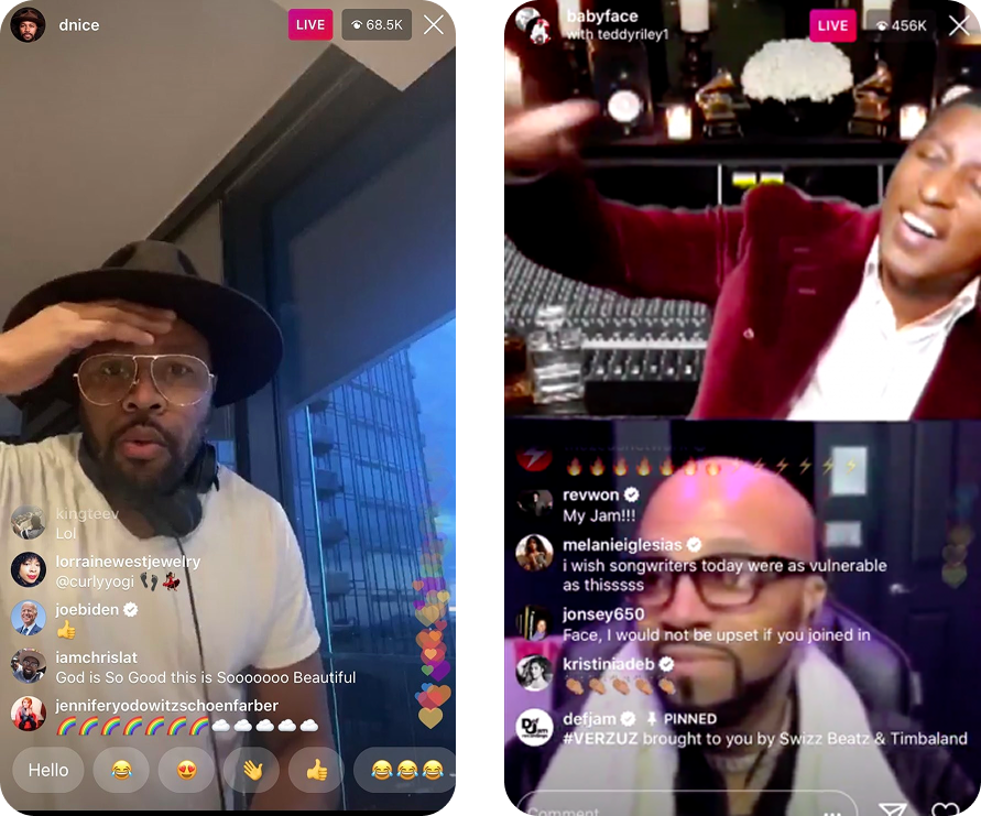 The pandemic brought about new behaviors to the Facebook family of apps. More and more data was showing that users were spending a considerable amount of time watching videos on our surfaces. While participating, I studied the user-generated experiences that were being created on our surfaces, like Verzuz on Instagram live. The team and I also referenced data from other video teams within Facebook to understand what paradigms would be most beneficial to our user set.