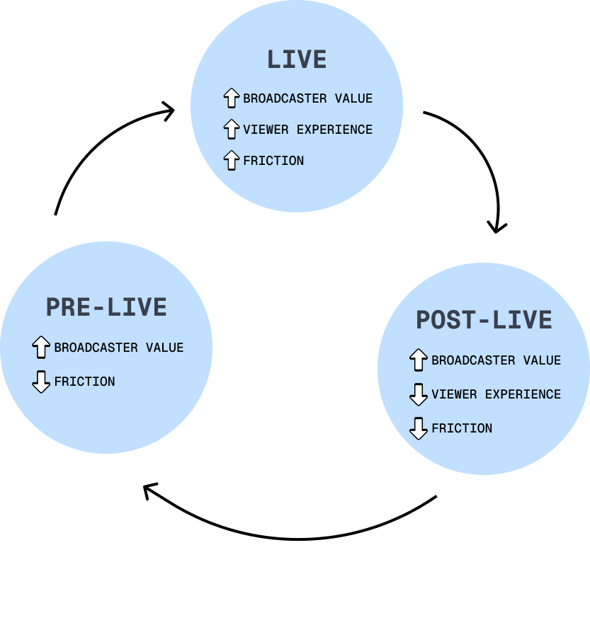 Last but not least, we needed to understand how viewers were going to engage and interact with the tools we were building. How did we get them more excited about live video? How could we improve their viewing experience and their concerns feel heard?