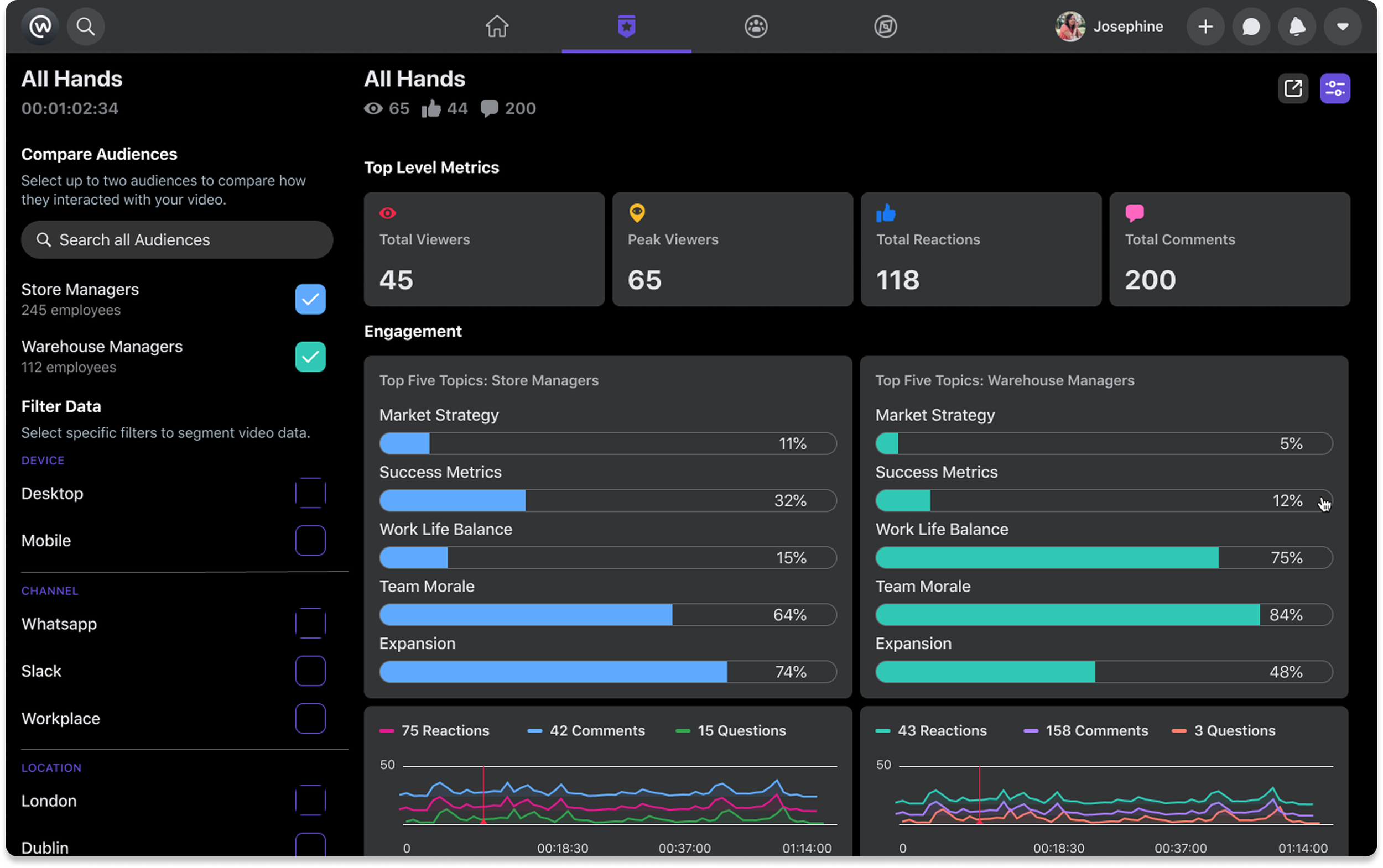 Hosts and moderators requested analytics on each broadcast to understand and improve the impact of the content they were creating. They wanted to understand viewer sentiment so that they could better tailor their videos to their audiences and encourage non-watchers to engage.