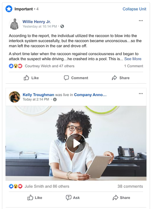 We had a āMark as Importantā feature for text posts; could it be repurposed for video posts? How would a video that was marked as important appear with other posts?