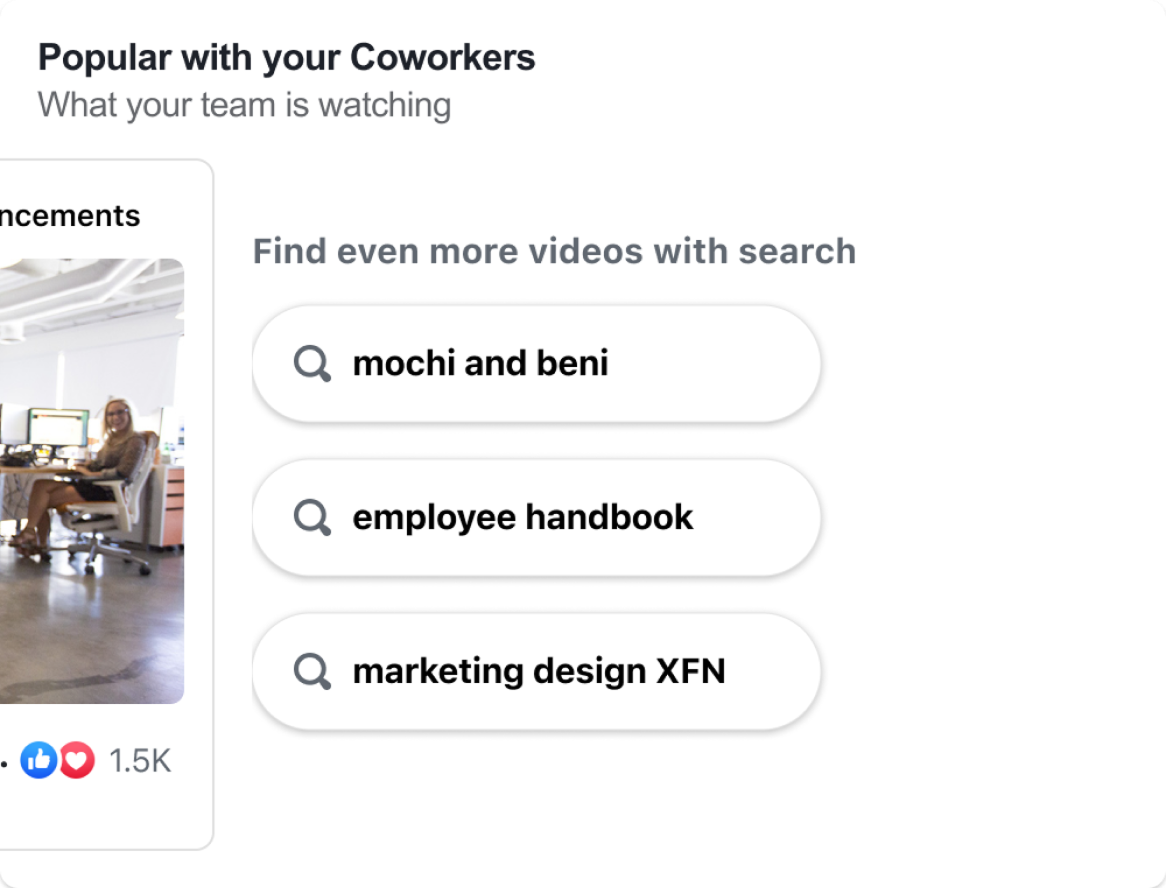 Exploring new grouping methods on Feed was one way of addressing the problem, but the IDIs revealed that employees were more often discovering videos through search, and were 44% less likely to find them without some combination of four key components.